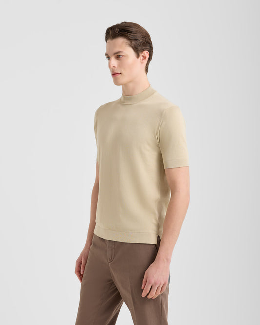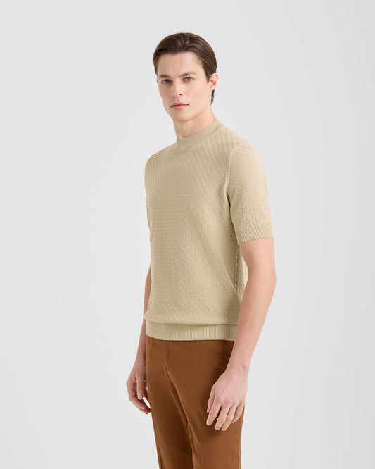 Textured short sleeve mock neck
